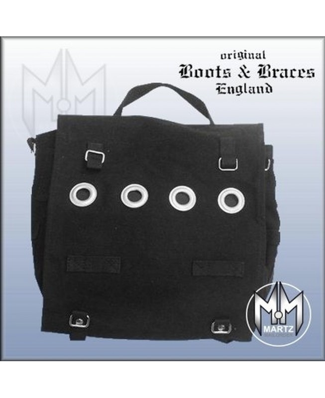 Praktische Original Boots & Braces Umhängetasche "Black Hole" mit Tragegriff und Loch-Optik.